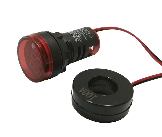 22mm red pilot light with ampmeter and current transformer form 1-99a, for vac, (peak max 380vac)