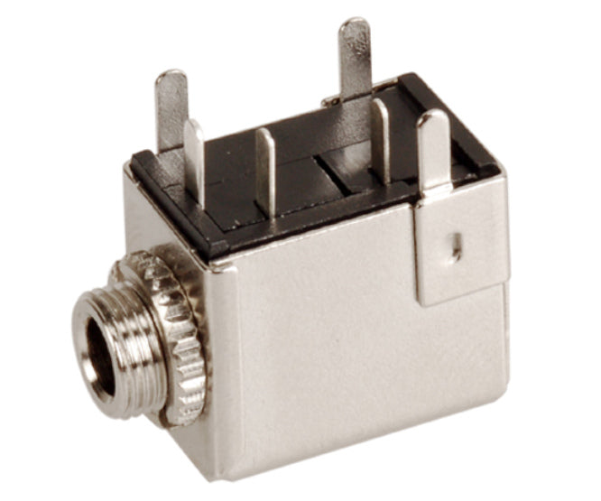 Right angle pcb mount mono phone socket/jack, 3.5mm, normally closed, shielded