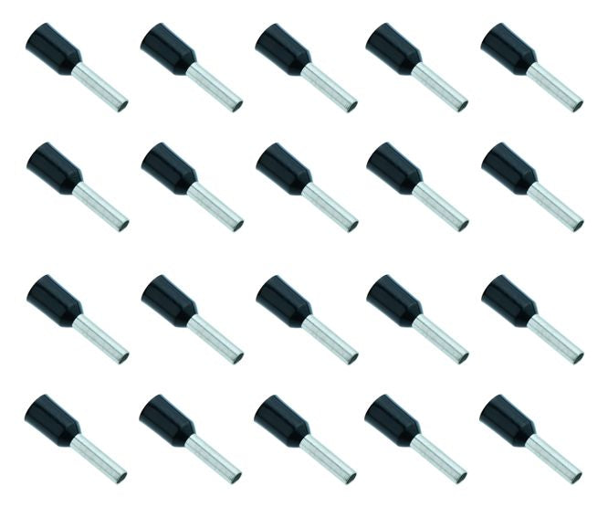 Black insulated bootlace / end terminal 8x1.7x2mm for 1.5mm2 wire, priced per bag of 1000 pieces
