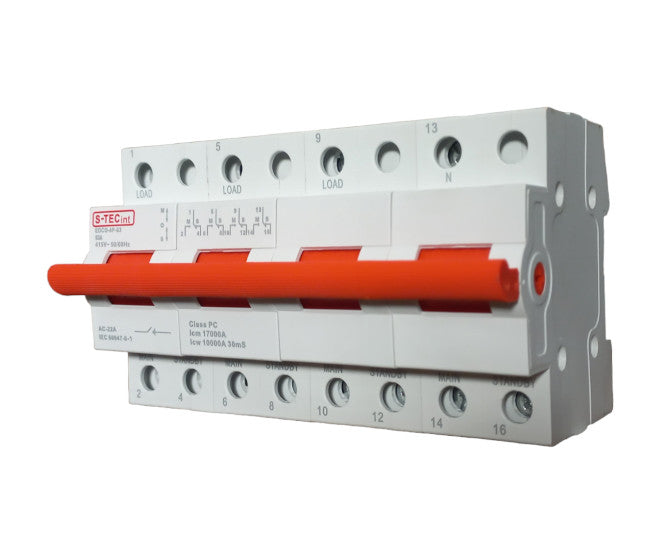 DIN rail mount CO-MODULAR, manual transfer / change over switch 4 pole, rated 100A