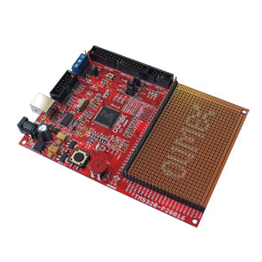 Tms320-p28016 development board with jtag, usb to rs232, can, uext, motor control connector, user button and headers for uc pins