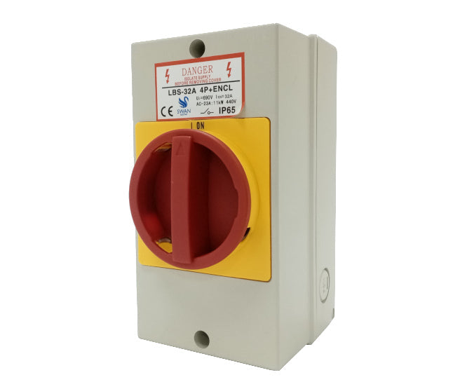Isolator switch / load-swicth in grey ip65 enclosed 3 pole 63 amp 440 volts with 6xpg16 inlets and 4xpg21 inlets