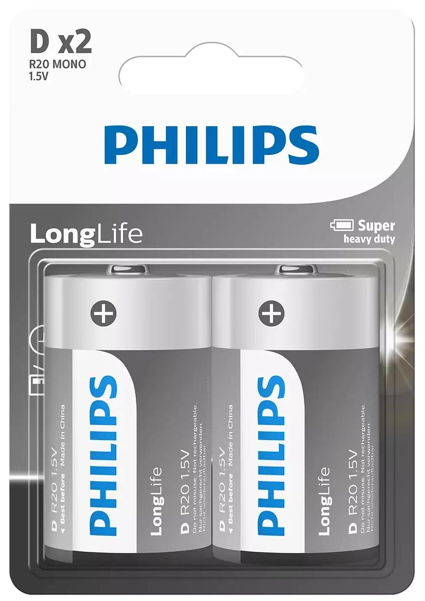 PHILIPS LONGLIFE BATTERY D 2 PACK - R20L2B/40