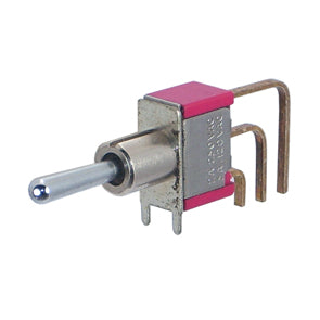 Toggle switch, miniature, spdt, 3 position, mom-off-mom, 5a @ 120vac / 28vdc, right angle pcb mount