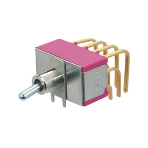 Toggle switch, miniature, qpdt, on-on, 2 position, right angle, pcb mount, 5a @ 120vac / 28vdc