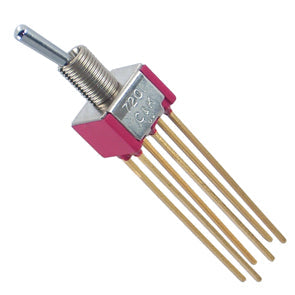 Toggle switch, miniature, dpdt, 2 position, on-none-on, 5a @ 120vac / 28vdc, wire wrap terminals
