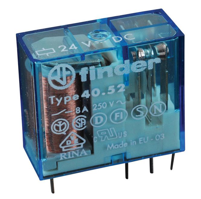Pcb mount power relay, 24vdc coil, 900 ohms, 12a contacts 29x12.4x25