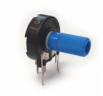 Potentiometer / preset vertical mount, adjustable horizontally, with 12mm blue shaft.