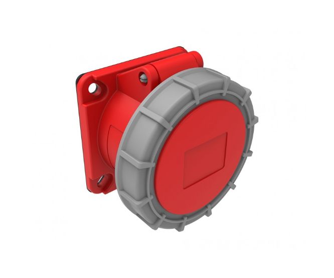Industrial weatherproof panel mount straight socket, 3poles+ earth + neutral, rated at 16A