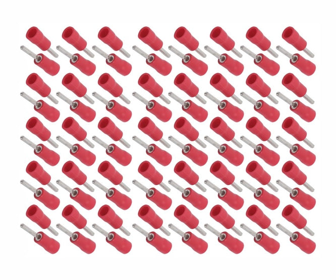 Pre-insulated red crimp pin terminal, 0.5-1.5mm2 wire, pin length=10mm, priced 1000pieces/bag.