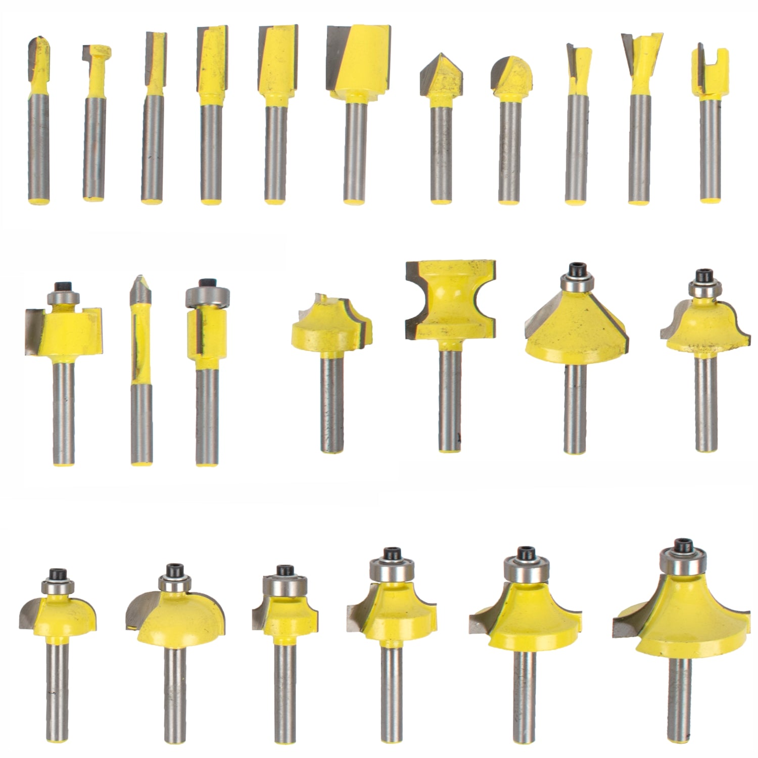 This comprehensive 24-piece router bit set is the perfect solution for woodworking enthusiasts and professionals alike. Each bit features a durable 1/4' shank, ensuring compatibility with most standard routers. The set includes a versatile array of bits for various applications, such as straight cuts, dadoes, rabbets, flutes, and decorative edging. All bits are neatly organized and protected in a rugged, lightweight aluminum case with a clear lid for easy bit identification. Crafted with high-quality materials and precision engineering, these bits are designed to deliver clean, accurate cuts and long-lasting performance. This set offers exceptional value, providing a wide range of essential woodworking tools in one convenient package.